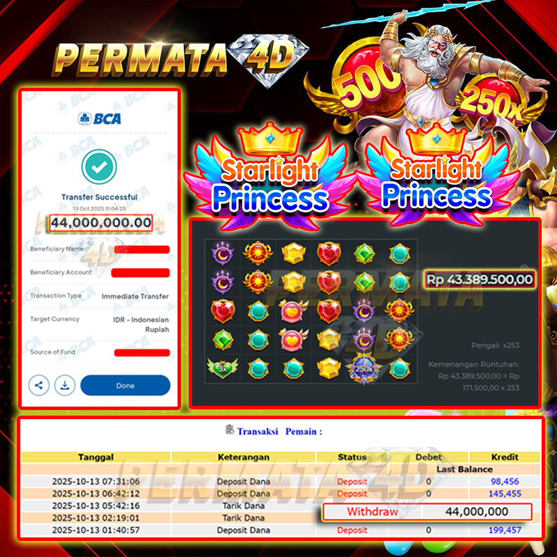 PERMATA4D JACKPOT STARLIGHT PRINCESS Rp. 44.000.000,- LUNAS