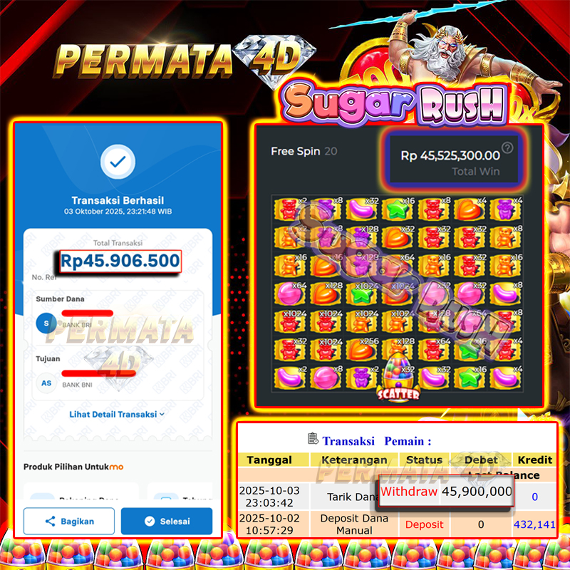 PERMATA4D JACKPOT SUGAR RUSH Rp. 45.900.000,- LUNAS