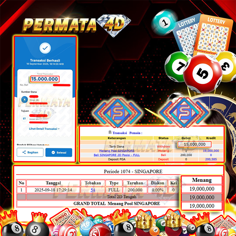 PERMATA4D JACKPOT SINGAPORE TOTO Rp. 15.000.000,- LUNAS
